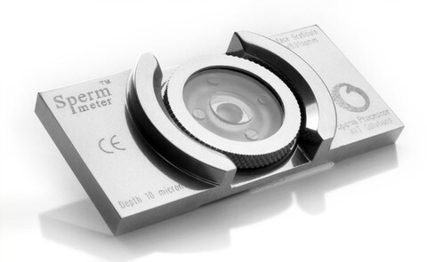 Sperm Meter включает в себя: металлический базовый блок; полукруглое ребро; металлическое кольцо, удерживающее покровное стекло с поверхностной сеткой (1мм²) на нижней поверхности; прецизионный оптический элемент с оптически плоской поверхностью и четырьмя выступающими штифтами, расположенными на 10 микрон выше центральной плоской поверхности.
